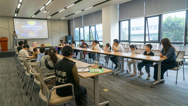 吃月餅是中國曆來過中秋節不可或缺的習(xi) 俗,但親(qin) 自動手做月餅這種體(ti) 驗對很多人來說較為(wei) 新鮮和陌生。看過老師的演示後,大家紛紛動手嚐試製作冰皮月餅。小朋友在家長的幫助下,一起揉麵團、包餡,家庭小組間互相探討著製作步驟。雖然大家都是第一次動手做月餅,但個(ge) 個(ge) 都是興(xing) 致盎然、熱情高漲,尤其是看到自己親(qin) 手做出的月餅,大家的臉上不時洋溢出快樂(le) 、滿足的笑容。